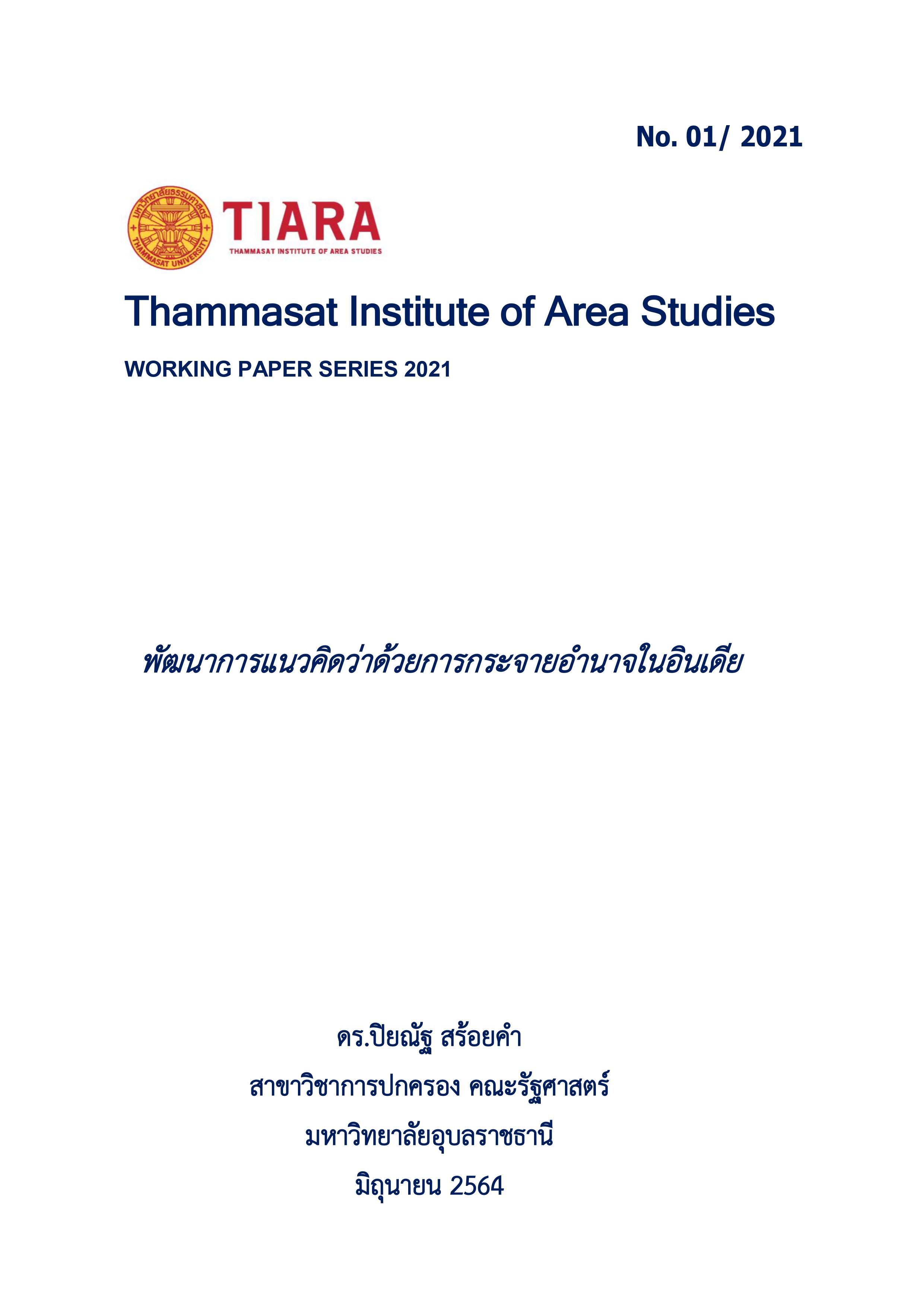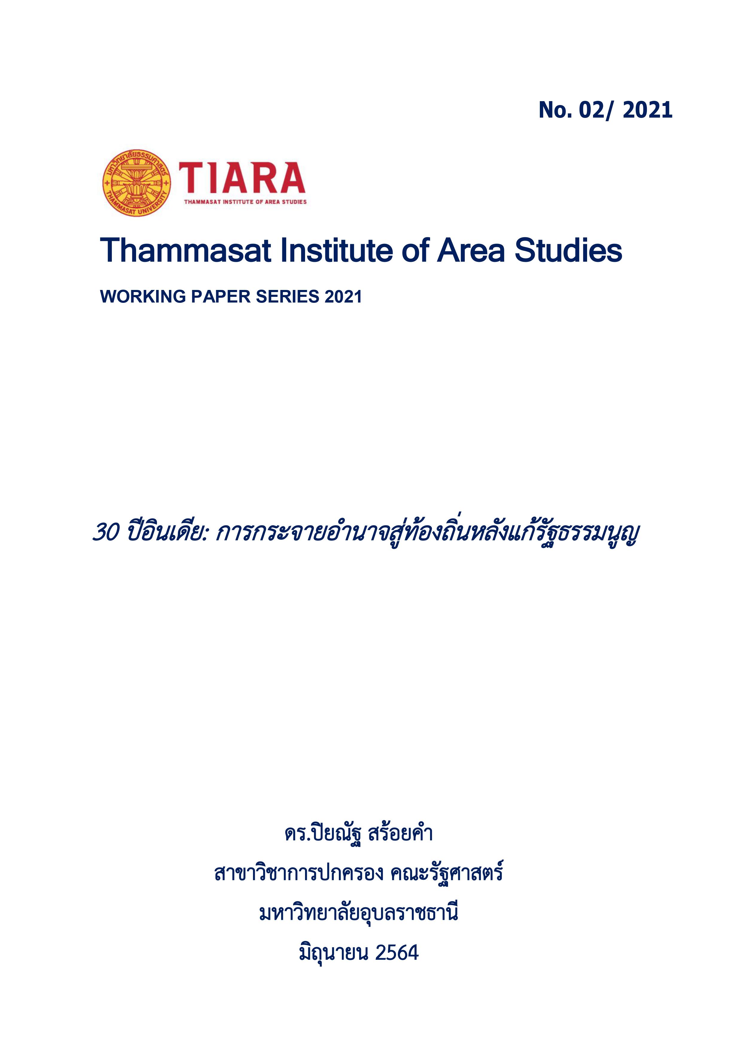 Due to copyright restrictions, contents of some publications cannot be viewed or downloaded directly from our website. If you wish to gain access to the content, you may contact us directly to tiara.thammasat@gmail.com and cc. to Ms. Natthakanya Jarungsri, Assistant to the Director, Research Affairs at natta_got@hotmail.com